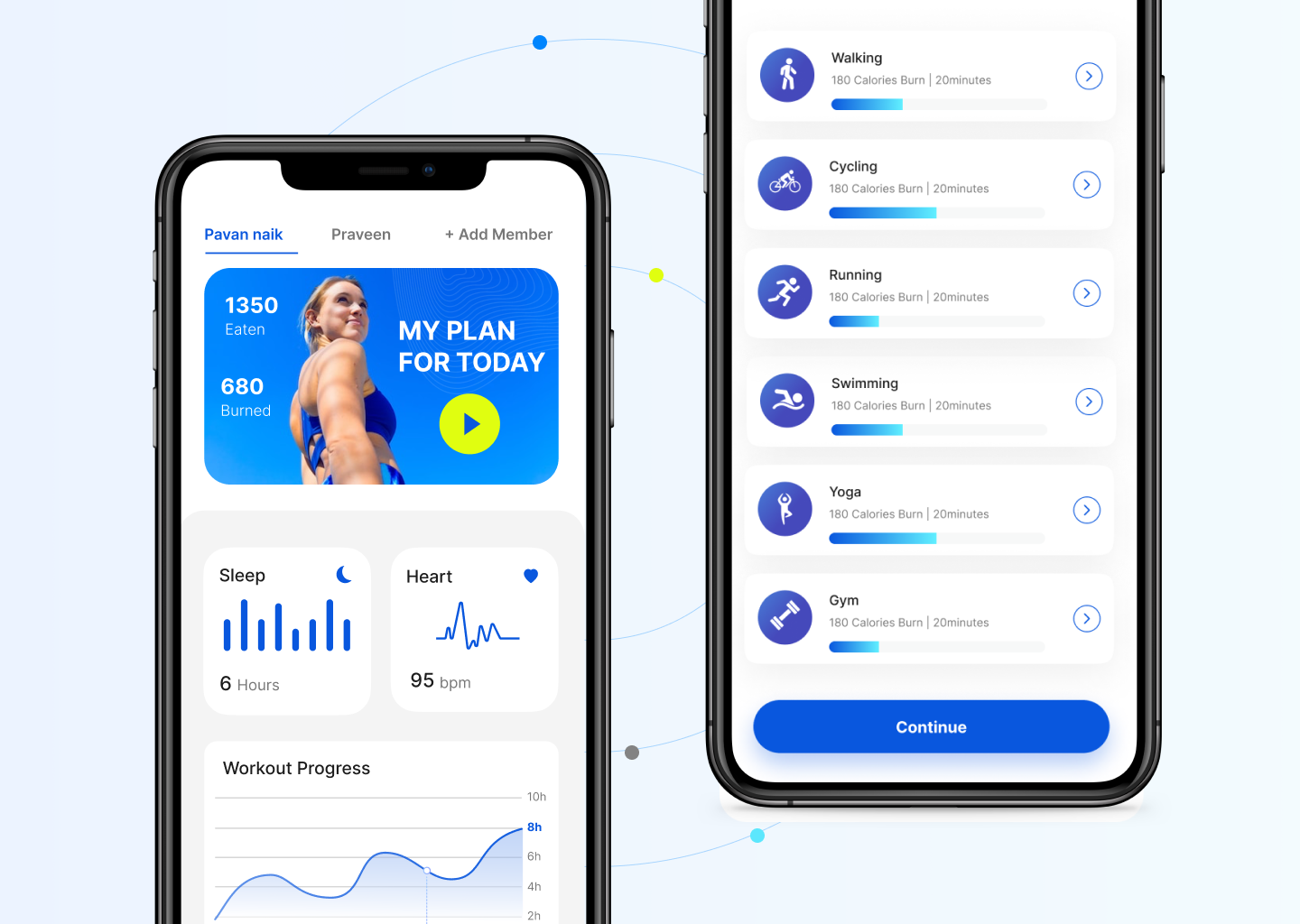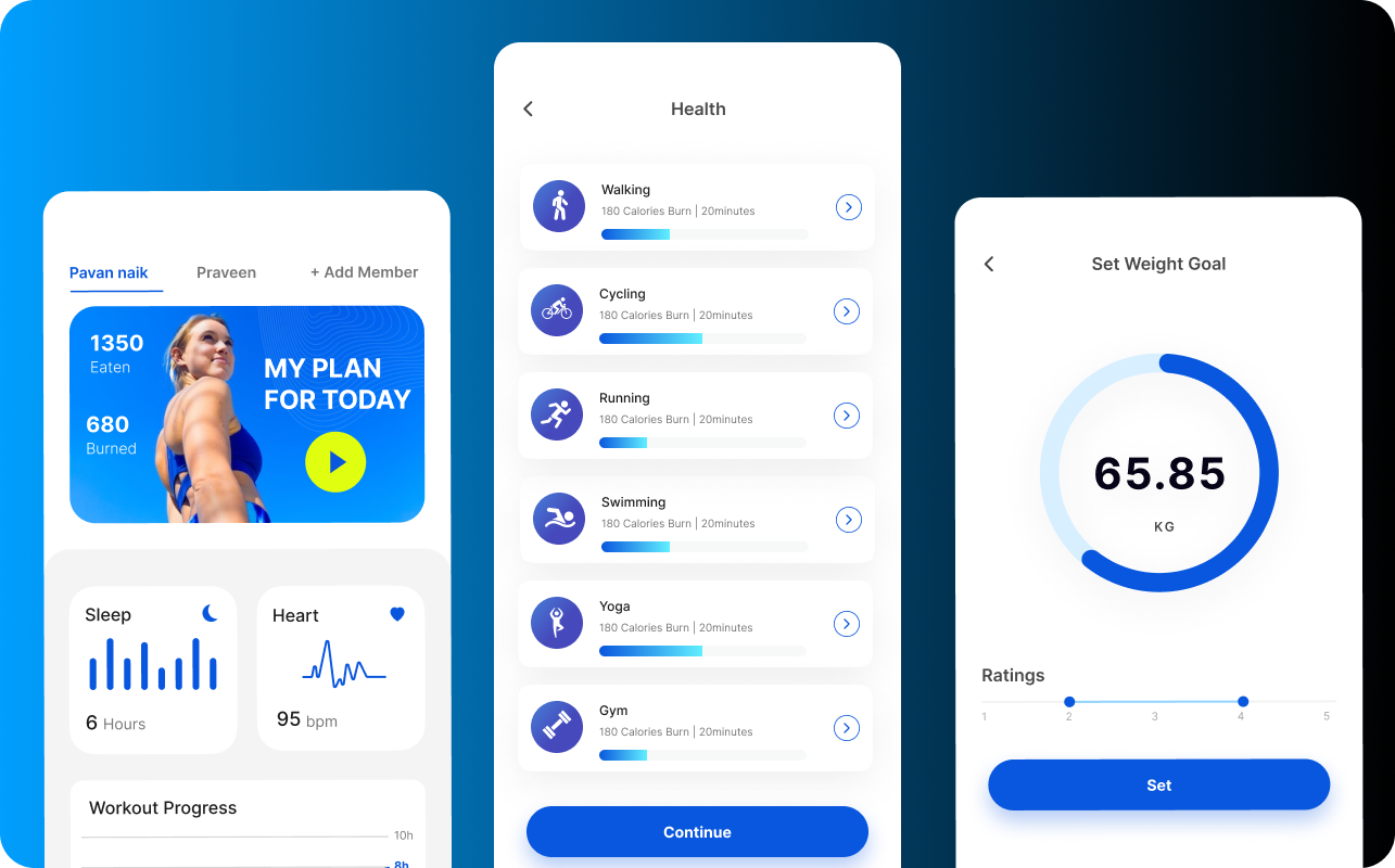 A modern fitness app UI designed for tracking workouts, monitoring progress, and setting fitness goals with an intuitive and engaging user experience.