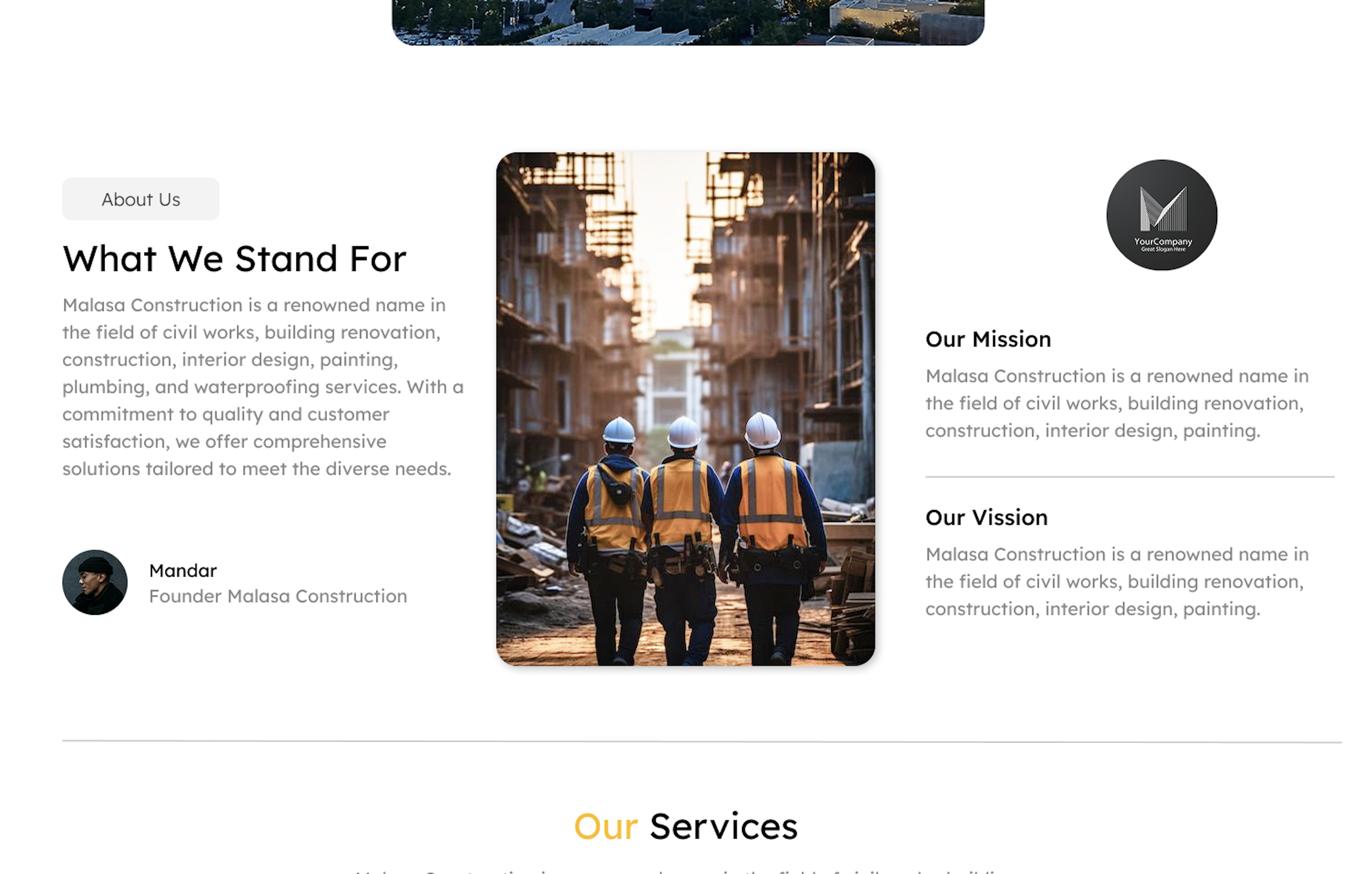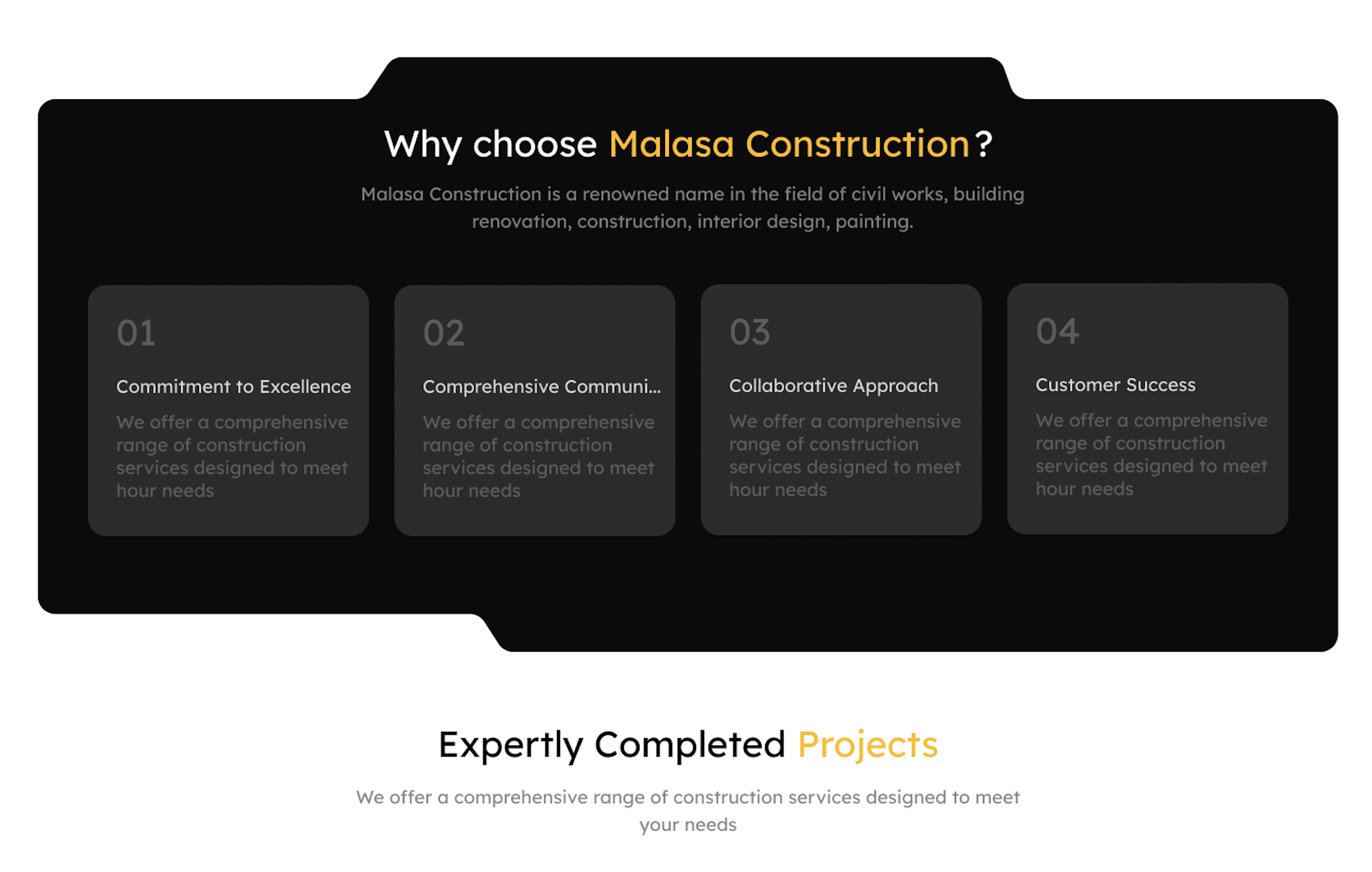 Created UI design for a construction company, focusing on modern aesthetics and user-friendly navigation.